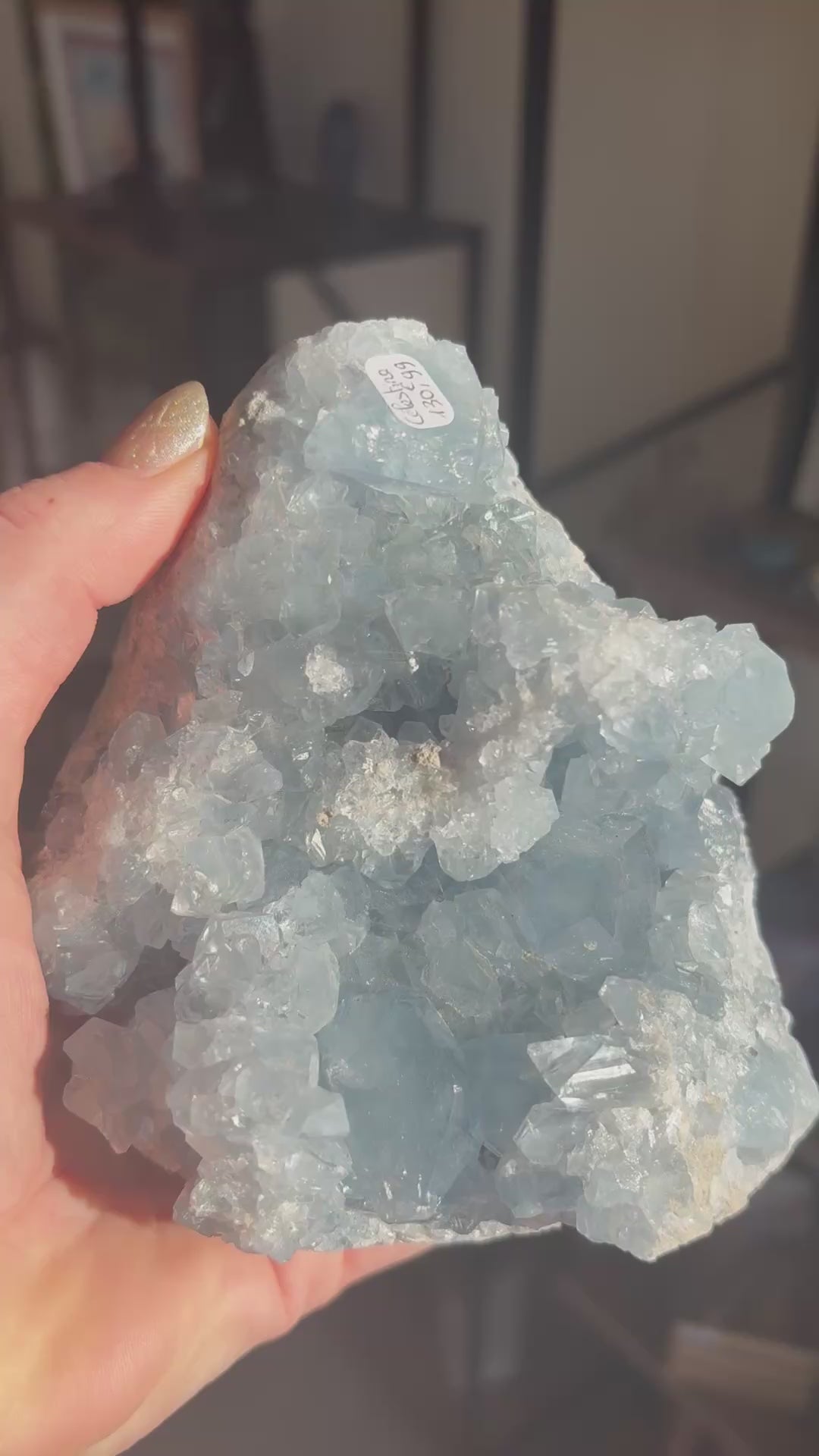 La calcédoine bleue favorise le bon fonctionnement du chakra de la gorge et du chakra racine.